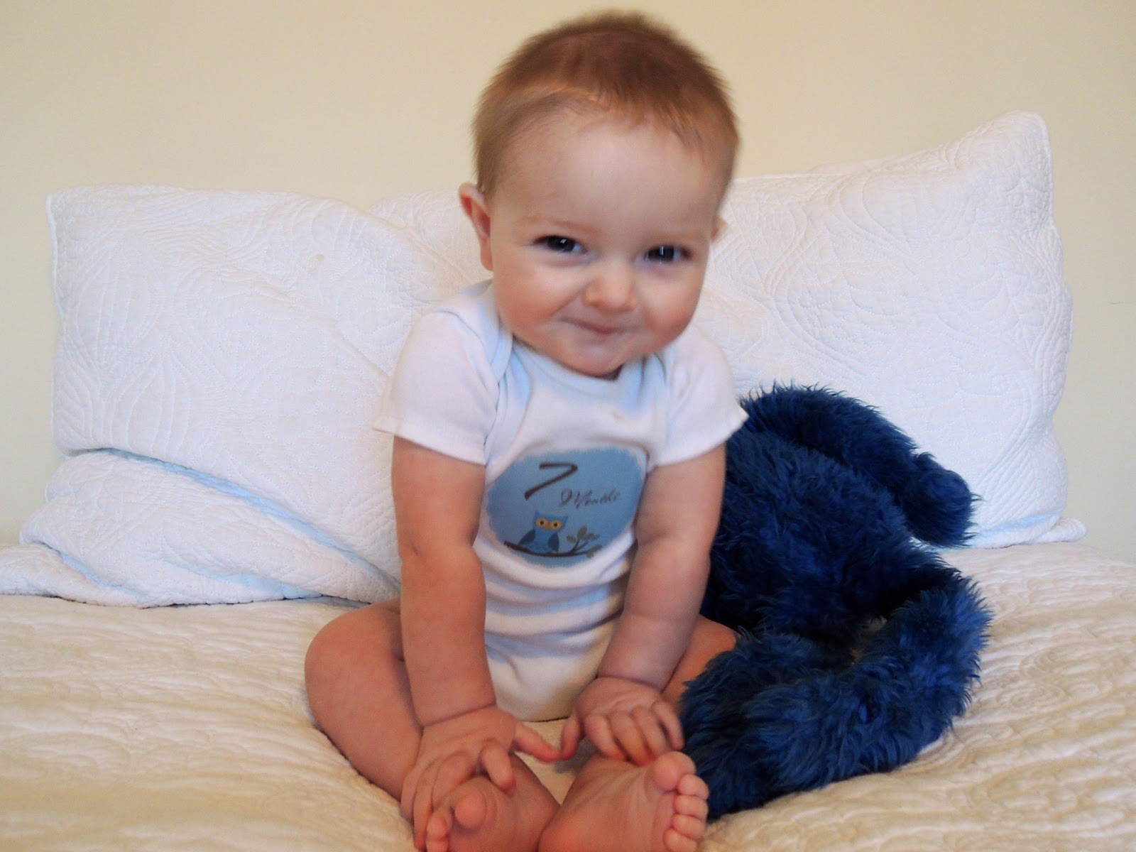 Anyway, John is officially seven months old. Actually, he's been seven months old for awhile now. I took pictures on his monthly birthday but have since been sitting on them. Here are the results: